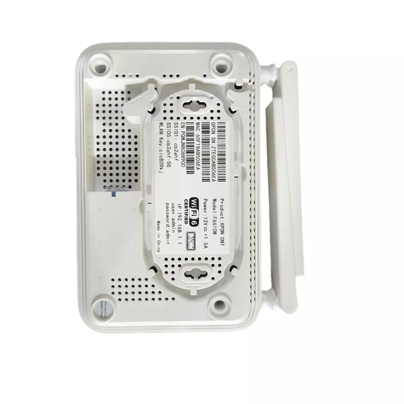 TENKILOMETERS အရည်အသွေးမြင့် ZXHN F6610M Dual Band Wifi6 GPON ONU ONT သည် GE ပေါက် 4 ခု၊ 1 ပေါက်ပေါက်နှင့် USB ပေါက် 1 ခု၊ နှင့် 2.4G နှင့် 5G Wi-Fi ချိတ်ဆက်မှုပါရှိသော အသိဉာဏ်ရှိသော Wi-Fi 6 လမ်းကြောင်းပြ-အမျိုးအစား Optical Network Terminal တစ်ခုဖြစ်သည်။ ထုတ်ကုန်သည် သုံးစွဲသူများအတွက် အလွန်ဘရော့ဘန်းအသုံးပြုခွင့်၊ မြင့်မားသောစွမ်းဆောင်ရည်နှင့် ကျယ်ပြန့်သောလွှမ်းခြုံမှုကို ပေးဆောင်ရန် Gigabit Passive Optical Network (GPON) နည်းပညာကို အသုံးပြုထားသည်။ မြင့်မားသော ထပ်ဆင့်ပို့ခြင်းစွမ်းဆောင်မှုဖြင့် — အသံ၊ ဒေတာ၊ နှင့် High Definition (HD) ဗီဒီယိုဝန်ဆောင်မှုများအတွက် ထူးခြားသောအတွေ့အကြုံကို အာမခံသည် — နှင့် အနာဂတ်ကို ဦးတည်သော ဝန်ဆောင်မှုပံ့ပိုးမှုစွမ်းရည်များ။
